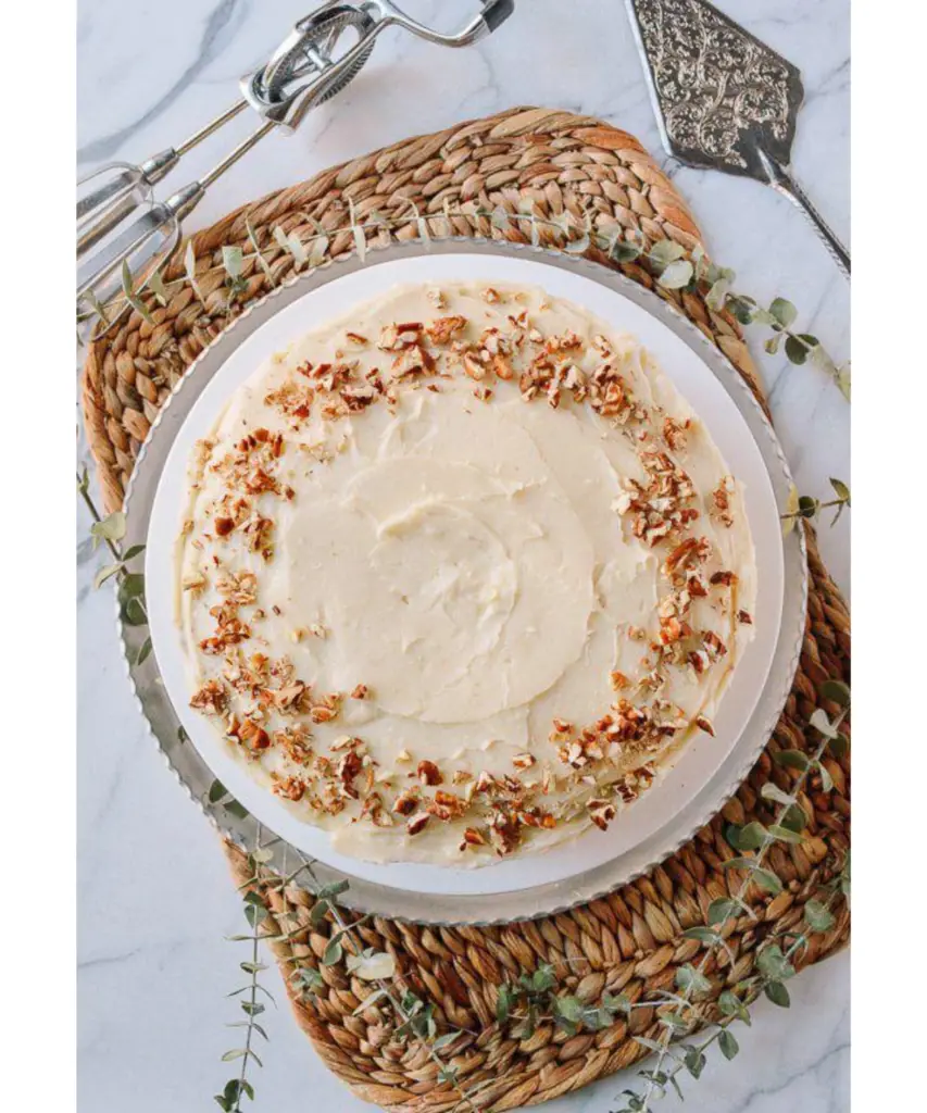 Ingredientes (Rende 12-14 fatias) Para o bolo: Para o recheio e cobertura: Preparação Sirva este delicioso bolo de cenoura como sobremesa ou no chá da tarde – uma verdadeira tentação …