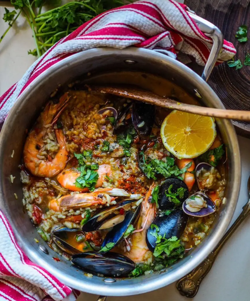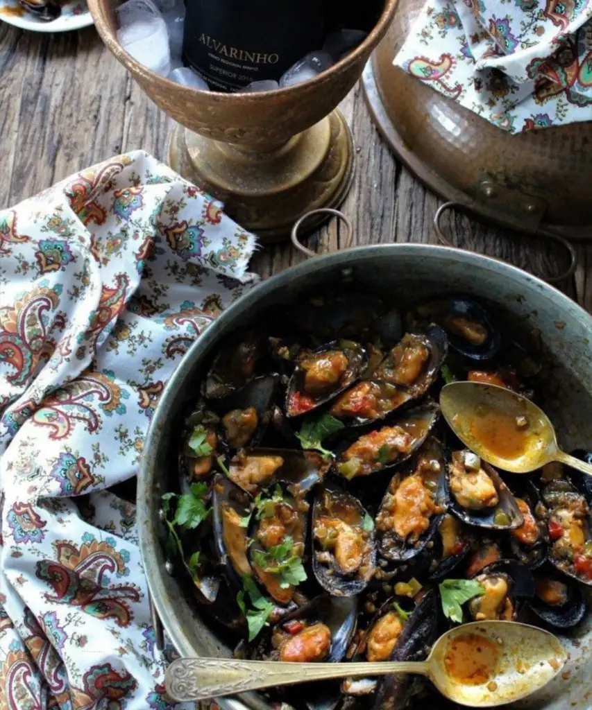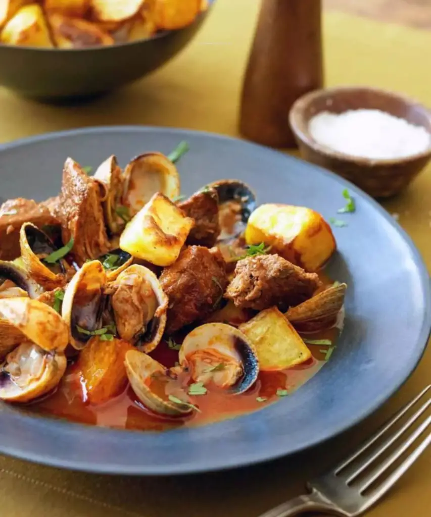 Ingredientes: Preparação: Esta cataplana é uma viagem de sabores do mar e da terra, perfeita para momentos especiais. Sirva bem quente e aproveite cada garfada! 🌿