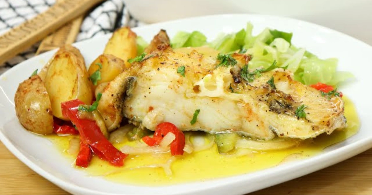 O resultado é um bacalhau suculento, perfeitamente assado, com batatas que absorvem todo o sabor do prato.
