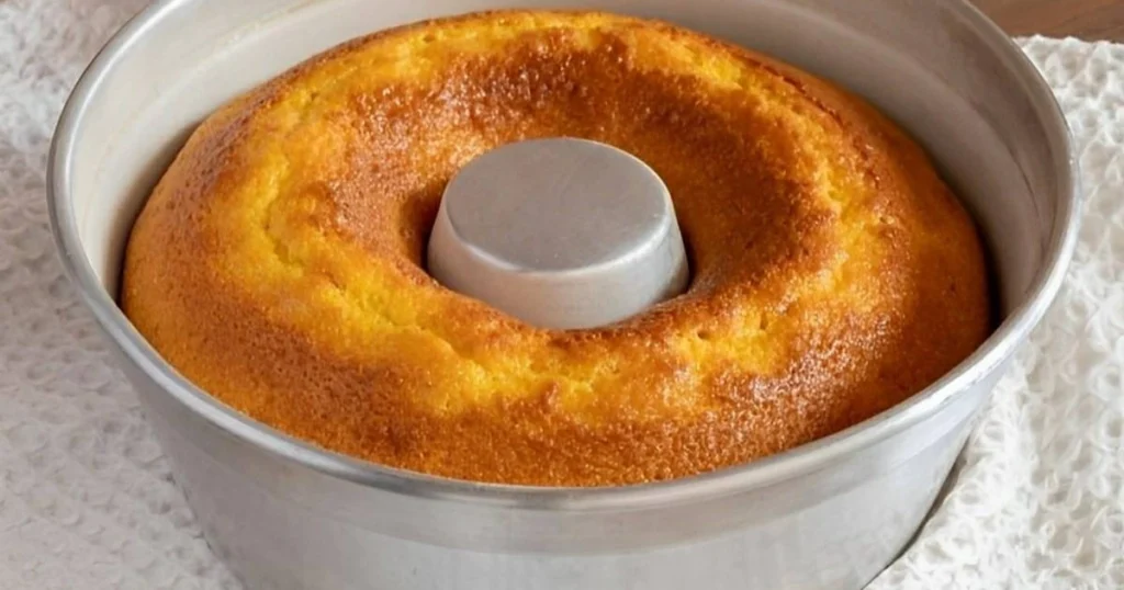 Ao final do processo, o bolo desenvolve cor dourada uniforme, aroma cítrico intenso e textura macia.