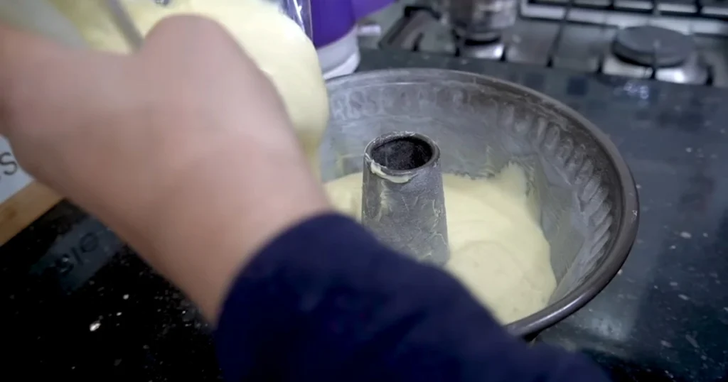 Bata por 2 a 3 minutos até obter uma mistura cremosa e homogênea. Essa etapa é essencial para garantir a leveza e o sabor equilibrado do bolo.