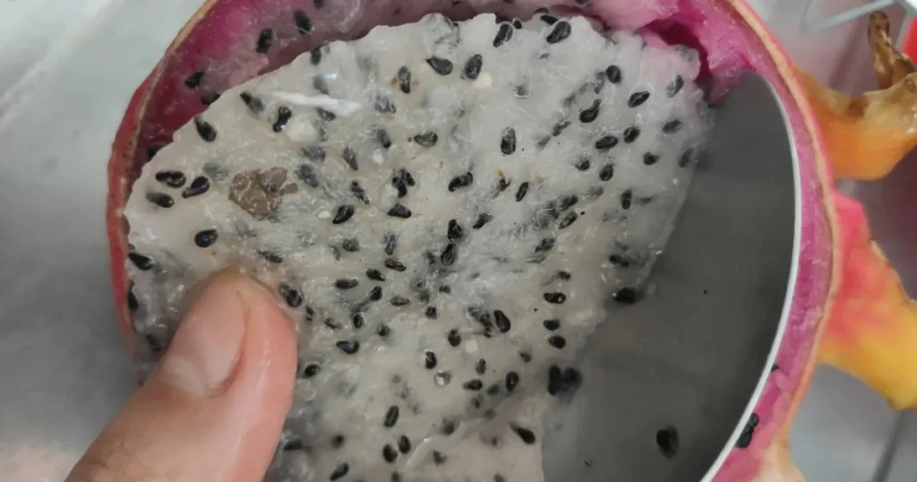 Para iniciar, escolha uma pitaya madura. A polpa deve estar macia e com sabor doce, indicando que as sementes estão prontas para germinar. Retire a polpa com uma colher, coloque em uma peneira e lave sob água corrente até separar completamente as sementes.