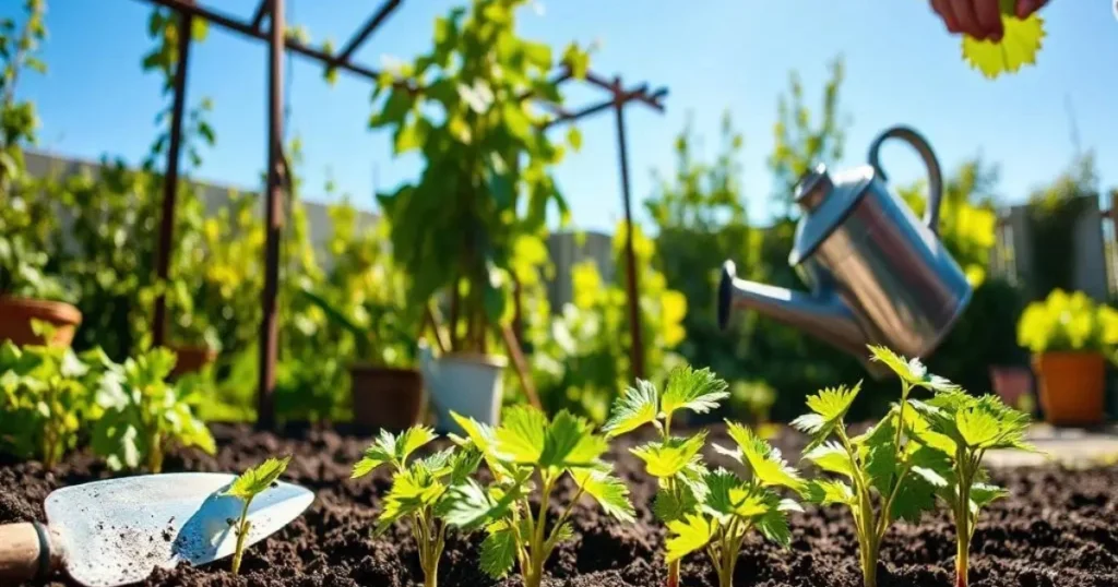 - Suporte vertical: instale uma treliça ou arame para guiar os ramos e facilitar a colheita.