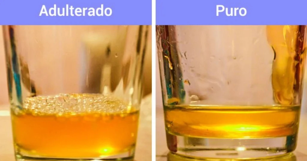 - O mel falsificado demora a engrossar, ferve de forma semelhante a um xarope e não endurece — sinal de presença de açúcares diluídos.