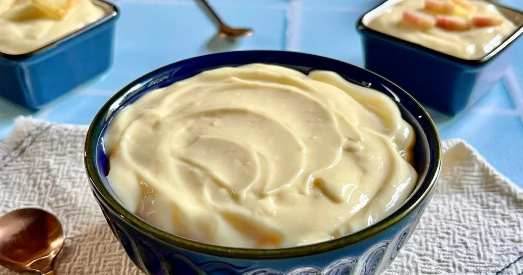 O creme de confeiteiro de maçã é uma opção mais suave, com sabor delicado e textura cremosa.