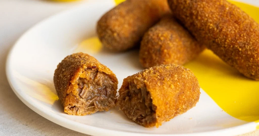 Os croquetes de carne são um clássico da culinária portuguesa — dourados por fora, cremosos por dentro e cheios de sabor. Preparados com uma combinação equilibrada de carnes, especiarias e um suave bechamel, tornam-se irresistíveis tanto para servir em festas como para congelar e fritar quando quiser. Esta receita detalhada ensina cada etapa para alcançar o croquete perfeito, com textura firme, sabor rico e crosta crocante.
