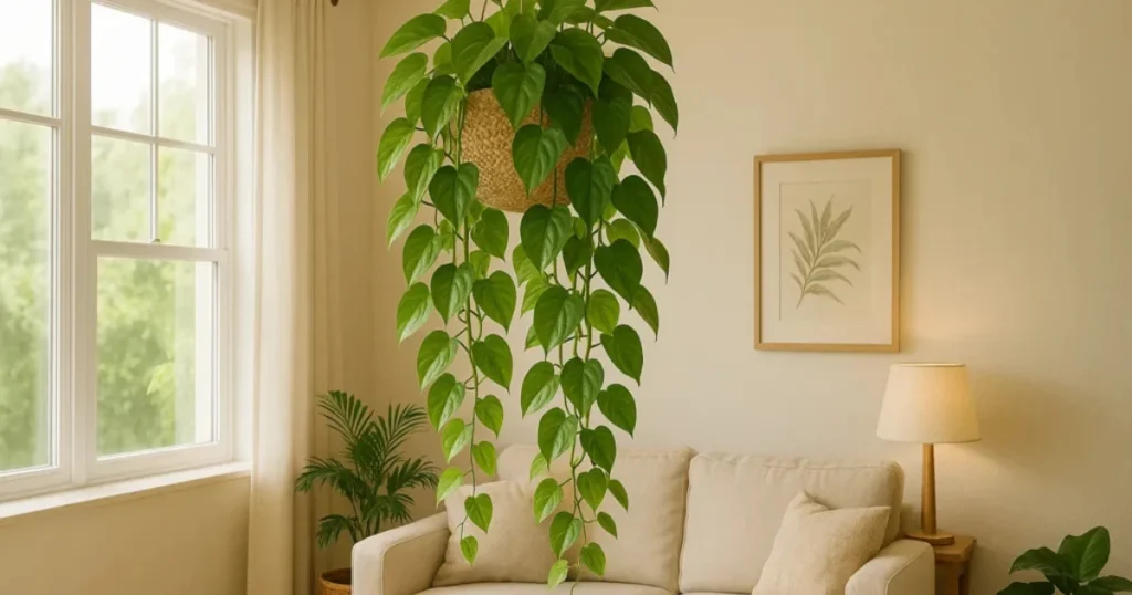 LSI utilizados: cuidados com jiboia, jiboia cheia, crescimento de plantas pendentes, Epipremnum aureum, planta de interior resistente, deixar jiboia volumosa.