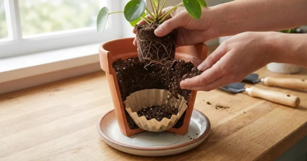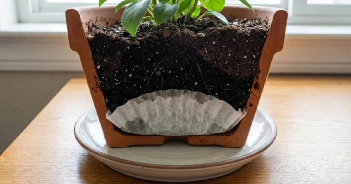 Filtro de café no vaso: solução simples e eficiente para drenagem e proteção do solo