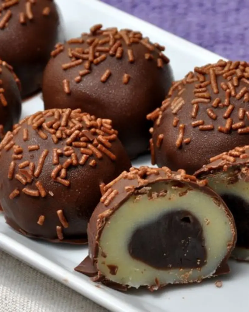 Ingredientes Para o Recheio: Para a Cobertura: Modo de Preparo Aproveite essa delícia de bombom casadinho! 🥰