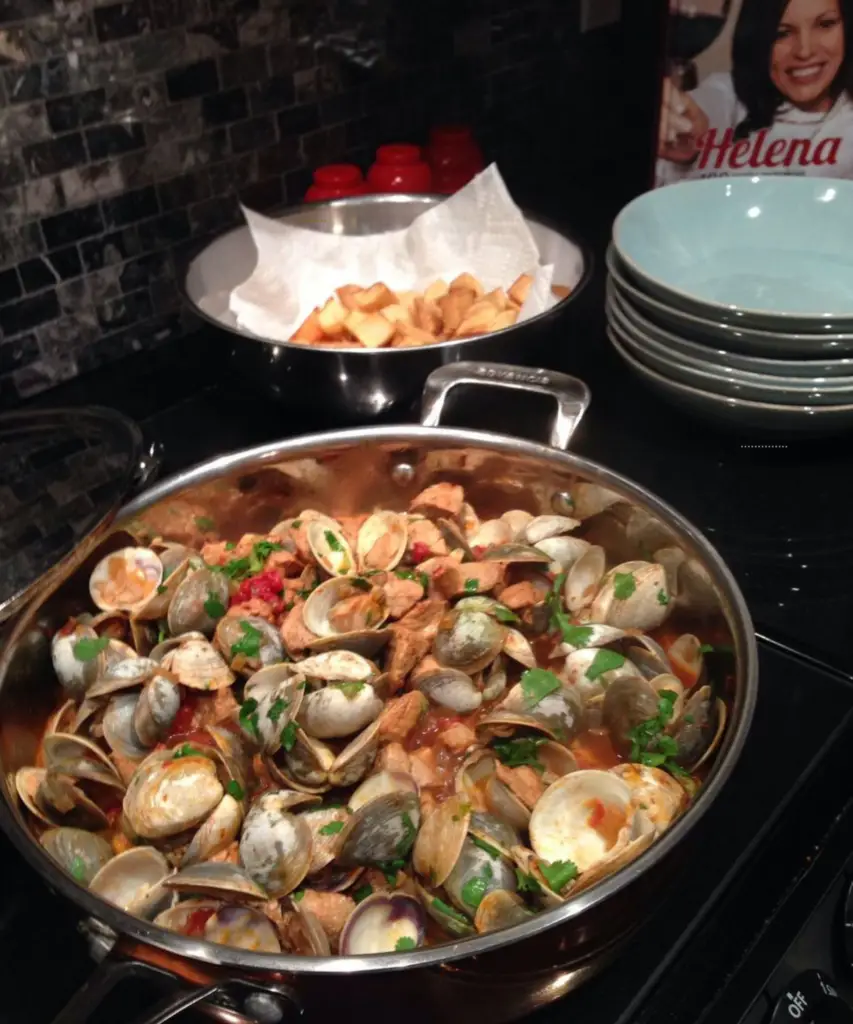 Ingredientes: Preparação: Esta cataplana é uma viagem de sabores do mar e da terra, perfeita para momentos especiais. Sirva bem quente e aproveite cada garfada! 🌿
