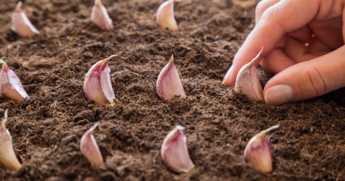 Plante cada dente diretamente no solo, com a ponta voltada para cima, a uma profundidade de 3 a 5 cm.