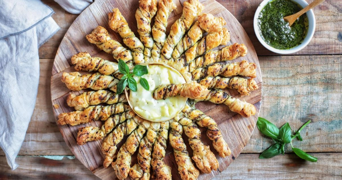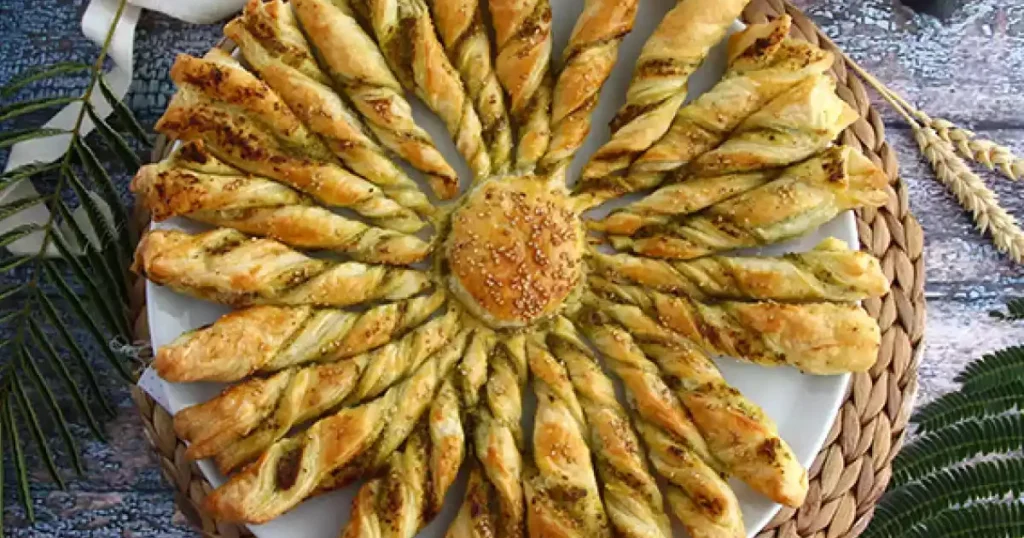 A Tarte Soleil au Pesto, ou torta sol de pesto, é uma receita tradicional da culinária italiana e francesa moderna, conhecida por seu formato decorativo e sabor irresistível. Feita com massa folhada e molho genovês, esta torta combina praticidade e sofisticação, sendo perfeita para servir como entrada, lanche ou petisco em festas e reuniões.